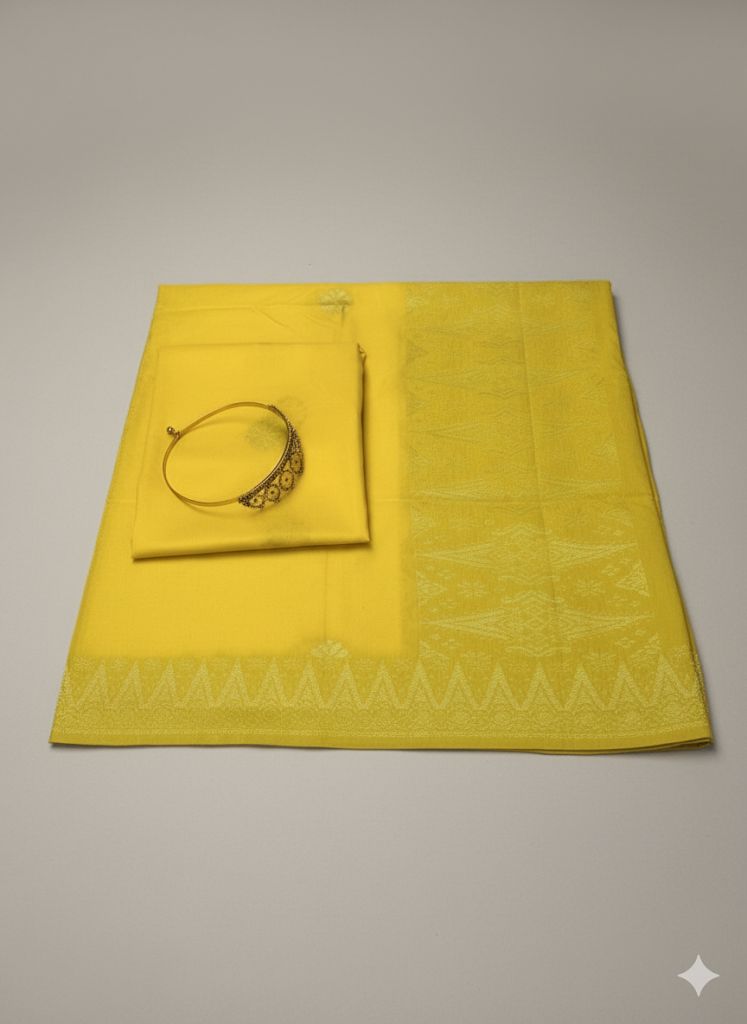Edisi Sulaman Emas Eksklusif pada fabrik kuning ini memberikan penampilan yang cerah, mewah dan penuh seri — pilihan sempurna untuk pelanggan yang ingin tampil elegan dengan warna yang menyerlah dan premium.